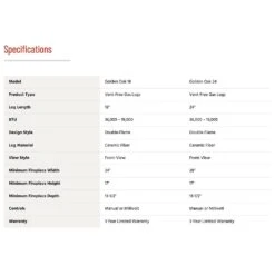 Superior LVDGO-B Vent-Free Ceramic Fiber Golden Oak Logs Gas Log Set